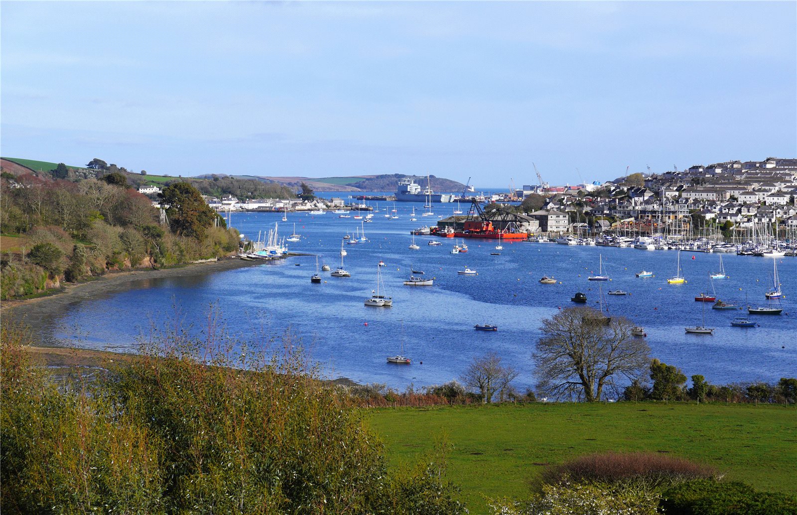 The property occupies a unique position being the sole residential property fronting the creek on this small peninsula, and surrounded by open farmland, yet just two miles from the thriving harbour town of Falmouth. Guide price £1,275,000.
