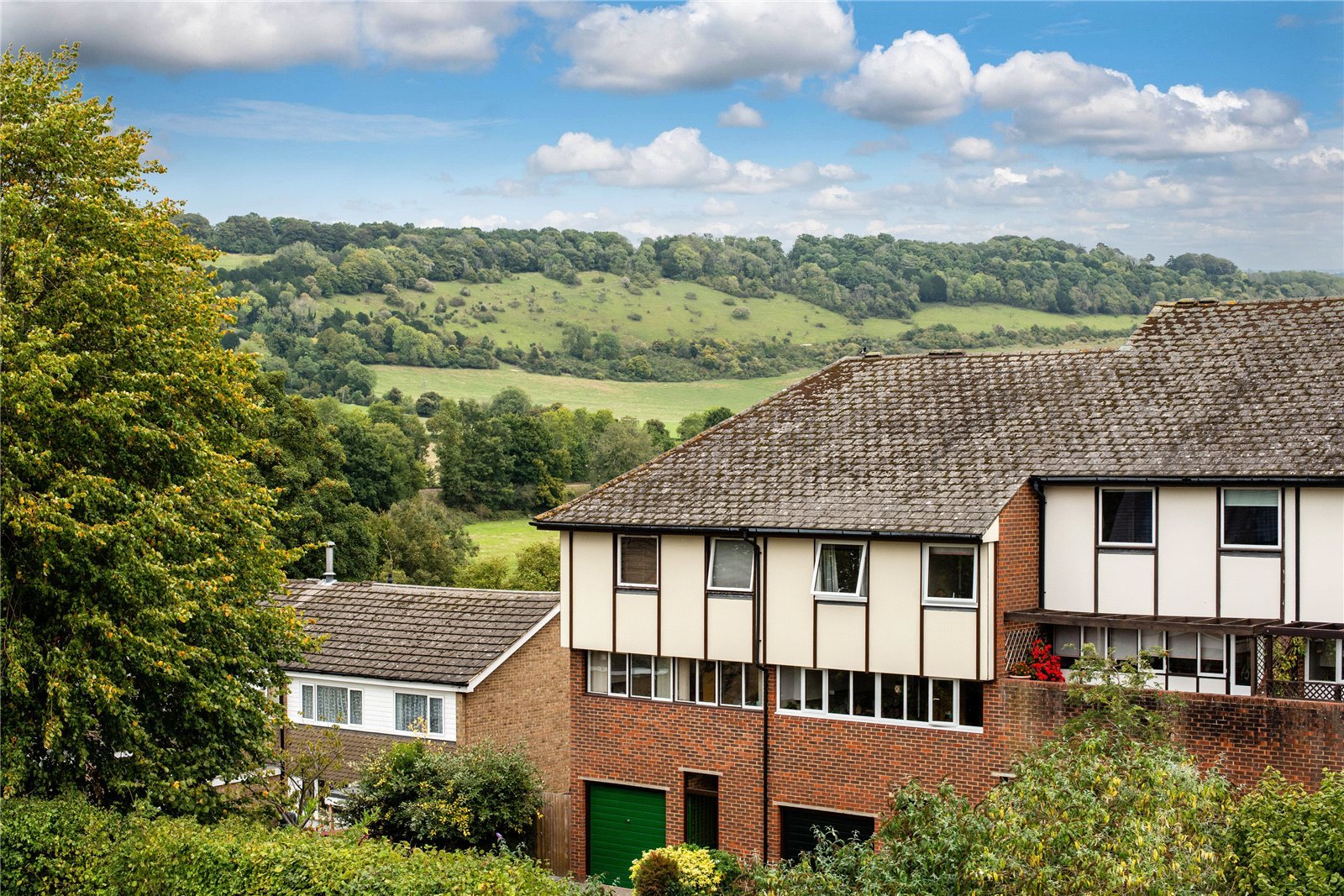 It's a luxurious four bedroom modern home in a development of just eleven homes. Light and airy, and with well-planned accommodation over three floors and a lovely garden, its location affords views over the North Downs. Guide price £710,000.