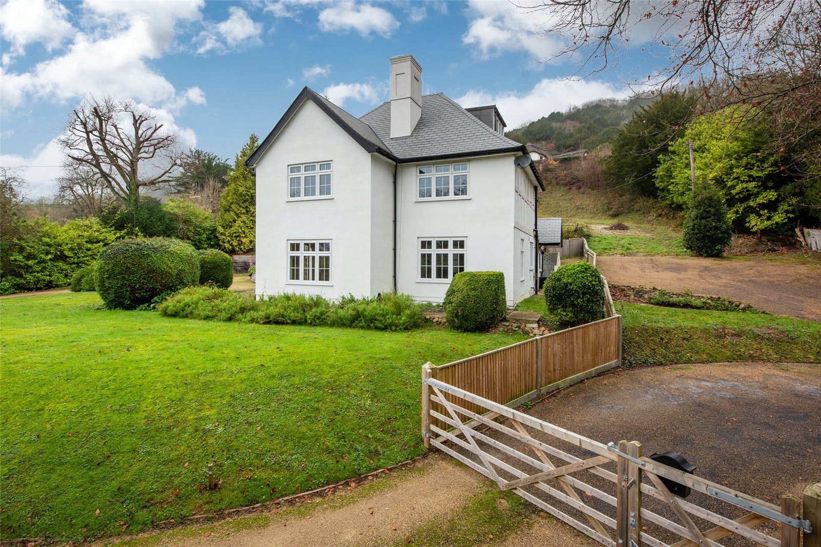 At the foot of Box Hill, Coombe Hayes, Pebblehill Road, Betchworth, Surrey is a wonderful four bedroom family home in established grounds, and makes the most of its envialbe position. Set over three floors, there's a sociable family kitchen/dining room with AGA - perfect for family occasions. Its location in the sought-after village of Betchworth means the new owners have their pick of great walking and cycling routes beyond Box Hill, with all that the Surrey Hills has to offer on the doorstep.