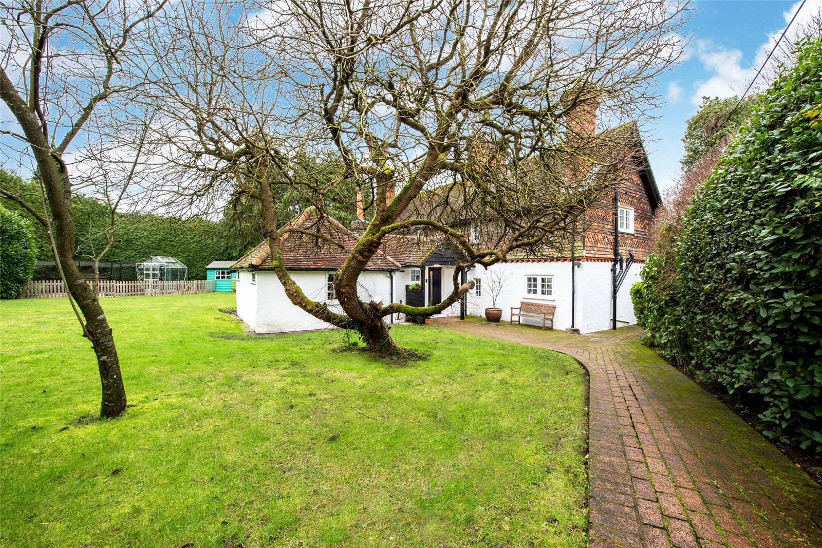Sitting room, kitchen/dining room, four bedrooms, guest bedroom with bath and separate WC, family bathroom, shower room, generous surrounding gardens, planning permission for a double garage, parking for several vehicles, in all, about 0.85 of an acre. Guide price £950,000
